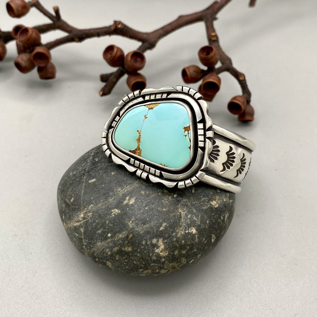 The Silhouette Cuff- Size XS/S- Natural Royston Turquoise and Stamped Sterling Silver Bracelet