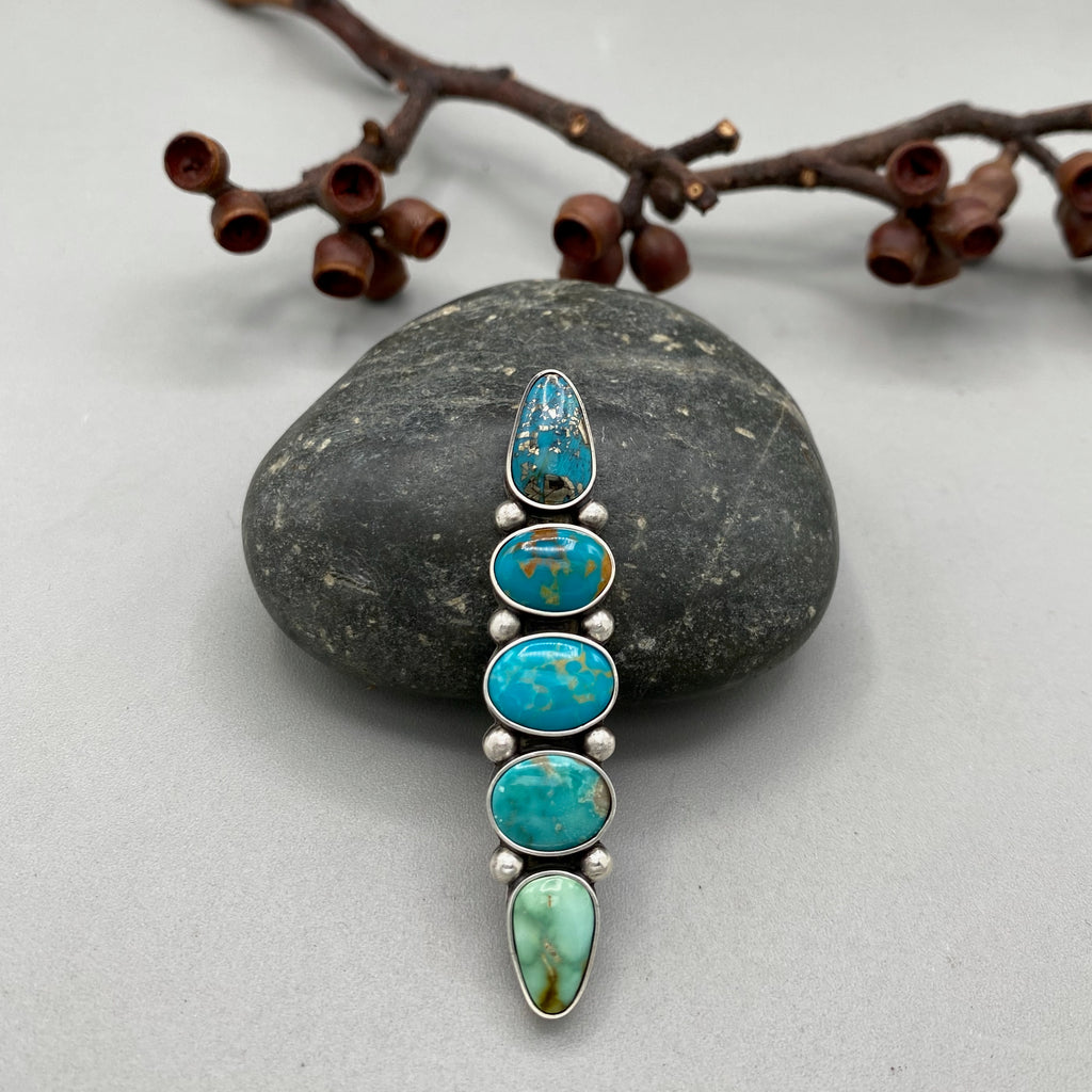 The Turquoise Collector Ring #2- Natural Royston, Kingman, and Morenci II Turquoise and Sterling Silver- Finished to Size or as a Pendant