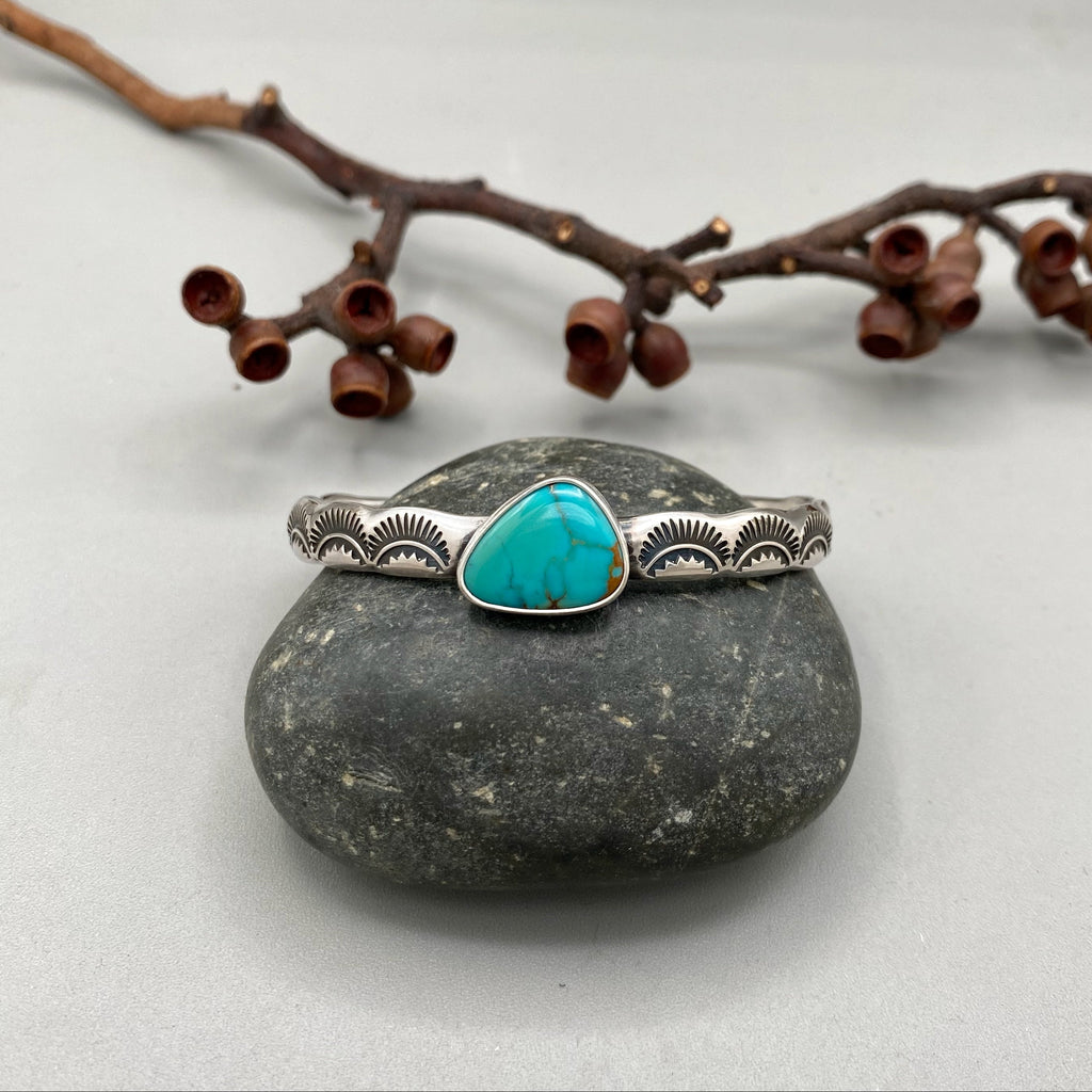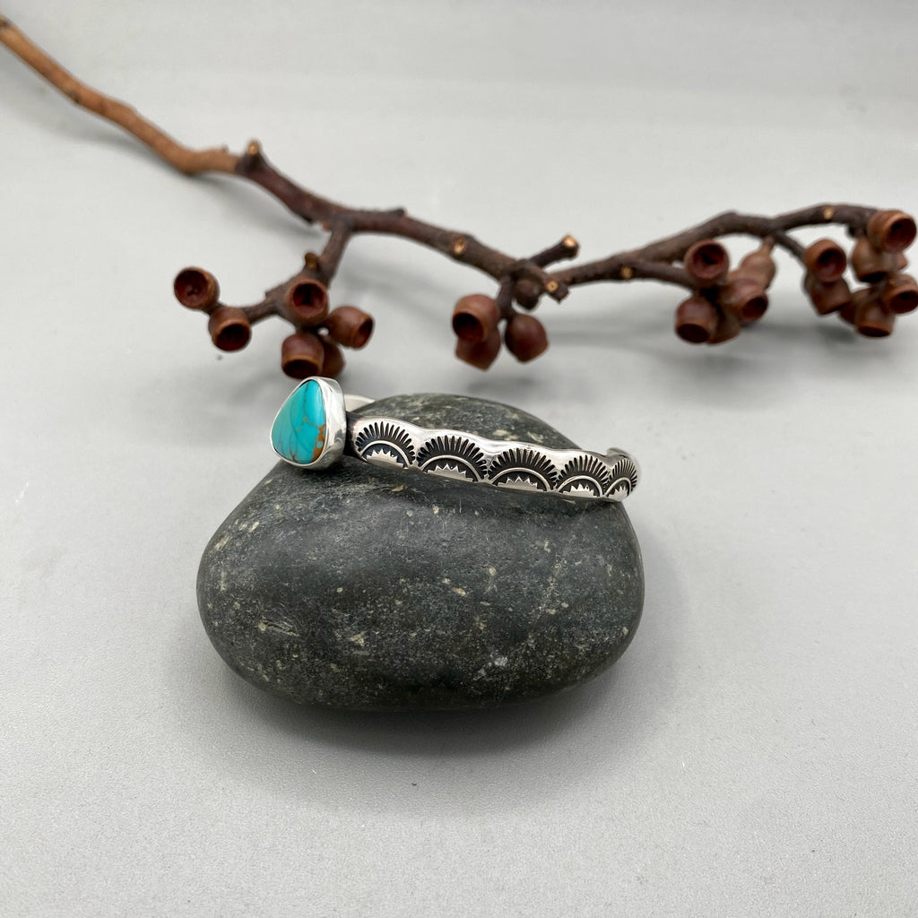 Heavyweight Stamped Cuff- Size M/L- Royston Turquoise and Chunky Sterling Silver Bracelet