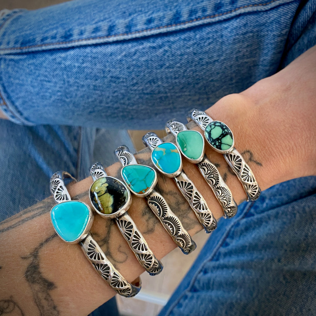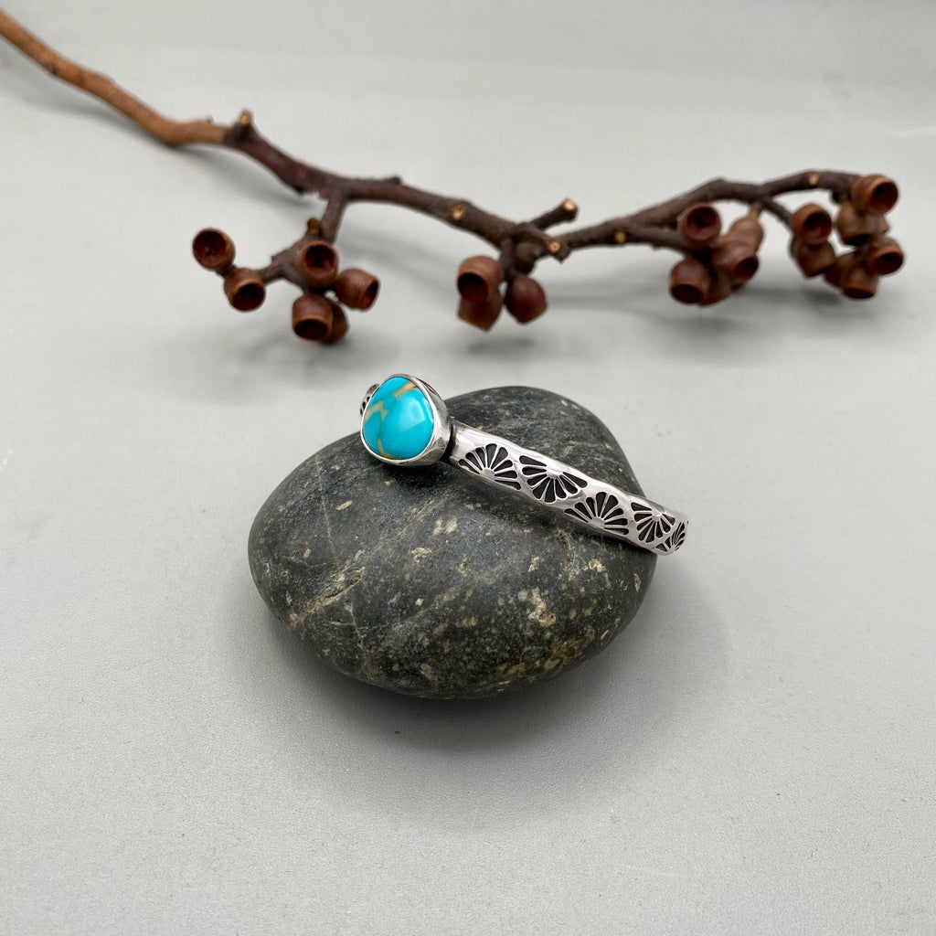 Heavyweight Stamped Cuff- Size S/M- Royston Turquoise and Chunky Sterling Silver Bracelet