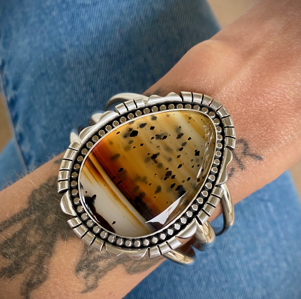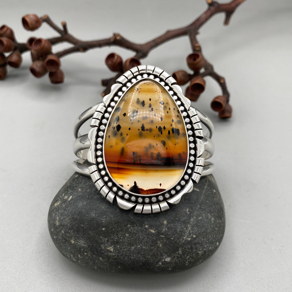 The Harvest Moon Cuff- Size S/M- Montana Agate and Sterling Silver Bracelet