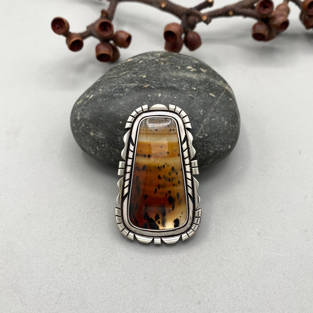 The Silhouette Ring - Montana Agate and Sterling Silver- Finished to Size or as a Pendant